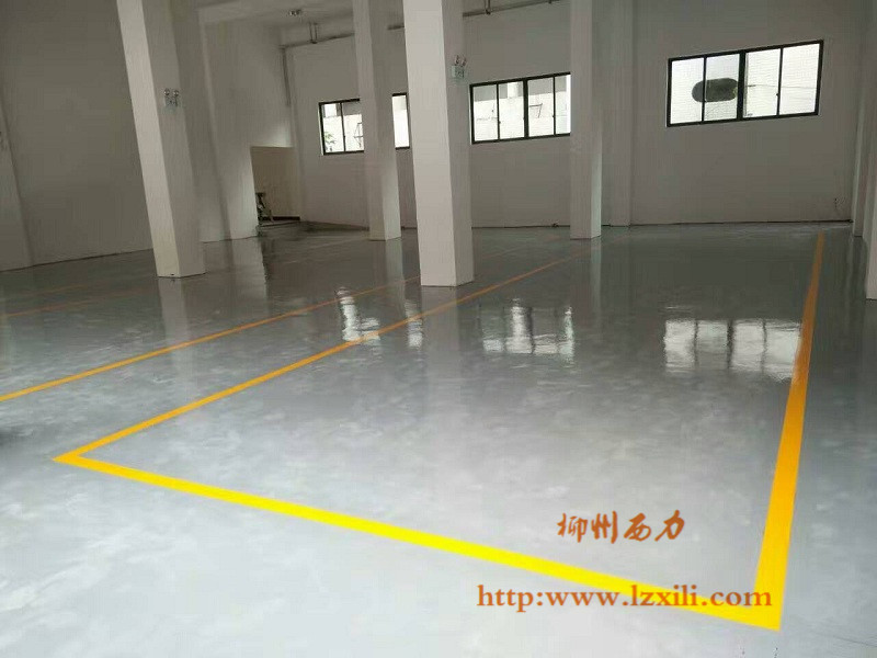 图为柳州白沙消防队新做的环氧地坪,灰色面漆+黄色划线漆,非常明显的标志,整个场地看起来也亮如镜子。